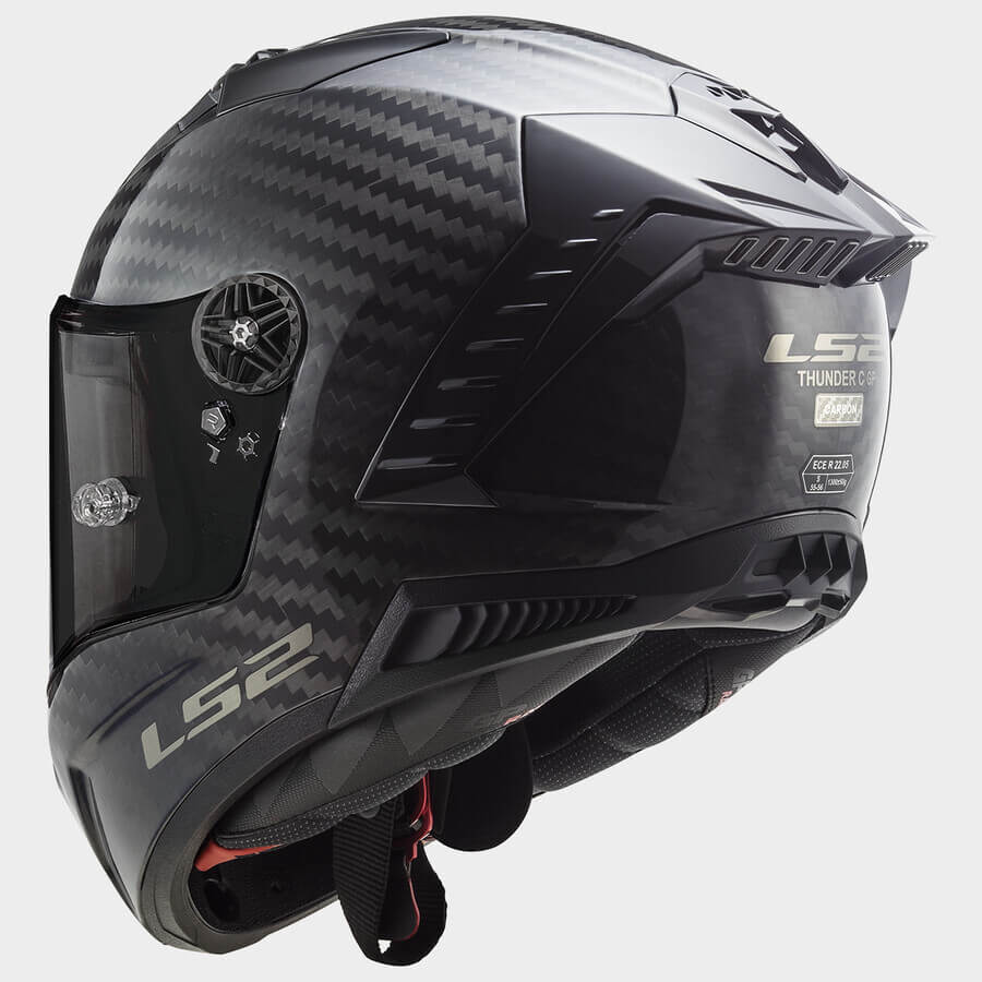 Thunder GP är en avancerad integralhjälm för MC-förare som ställer höga krav på säkerhet, passform och funktion. Hjälmen är konstruerad i 6K kolfiber, vilket ger låg vikt och hög styrka. För den som söker ännu styvare skal finns Thunder GP PRO, tillverkad i tätare 9K kolfiber.